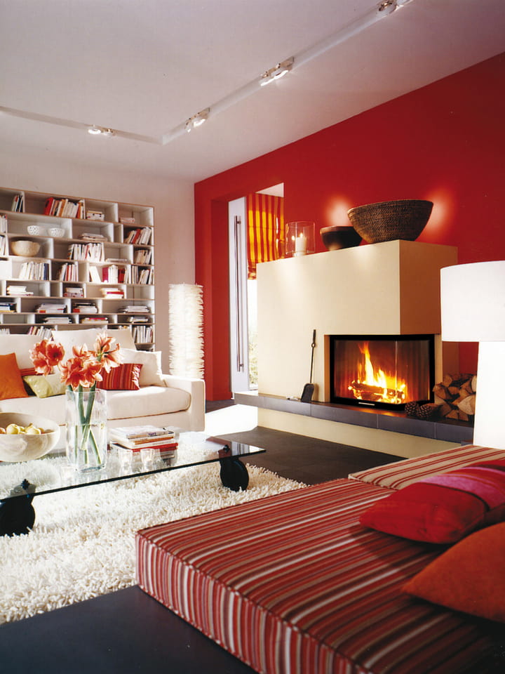 - Arte — модели с вытянутым по высоте стеклом. Вертикальный формат позволит в полной мере насладиться красотой горения. Максимальная мощность топок в диапазоне от 8.3 до 16.9 кВт. Возможны следующие варианты стекла: привычное фронтальное, двухстороннее или же трёхстороннее. Фронтальное стекло трёхсторонних топок может быть широким (такие модели лучше располагать у стены) или узким, но с длинными боковыми стёклами, что отлично подойдёт для завершения межкомнатной перегородки. Дверца всегда оснащена подъёмным механизмом.