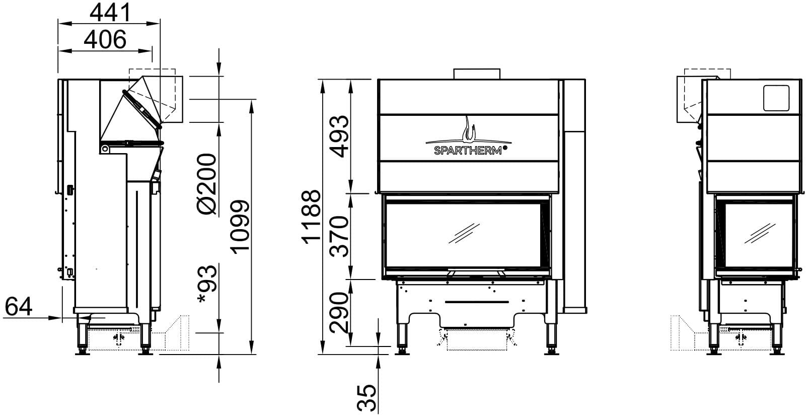 Каминная топка Spartherm Varia AS-2Lh/AS-2Rh (Шпартерм Varia AS-2Lh/AS-2Rh) — это высокоэффективная, современная модель с корпусом из стали. Максимальная мощность равна 9.1 кВт, чего хватает для обогрева помещения в 225 м³. КПД — 80%. У топки два жаропрочных стекла украшенных по периметру шелкографией (отделка Linear 4S). Дверца с подъёмным механизмом. Второе стекло расположена слева (AS-2Lh) или справа (AS-2Rh). Ширина дверцы с фронтальной стороны — 730 мм, с боковой — 358 мм, высота — 370 мм.