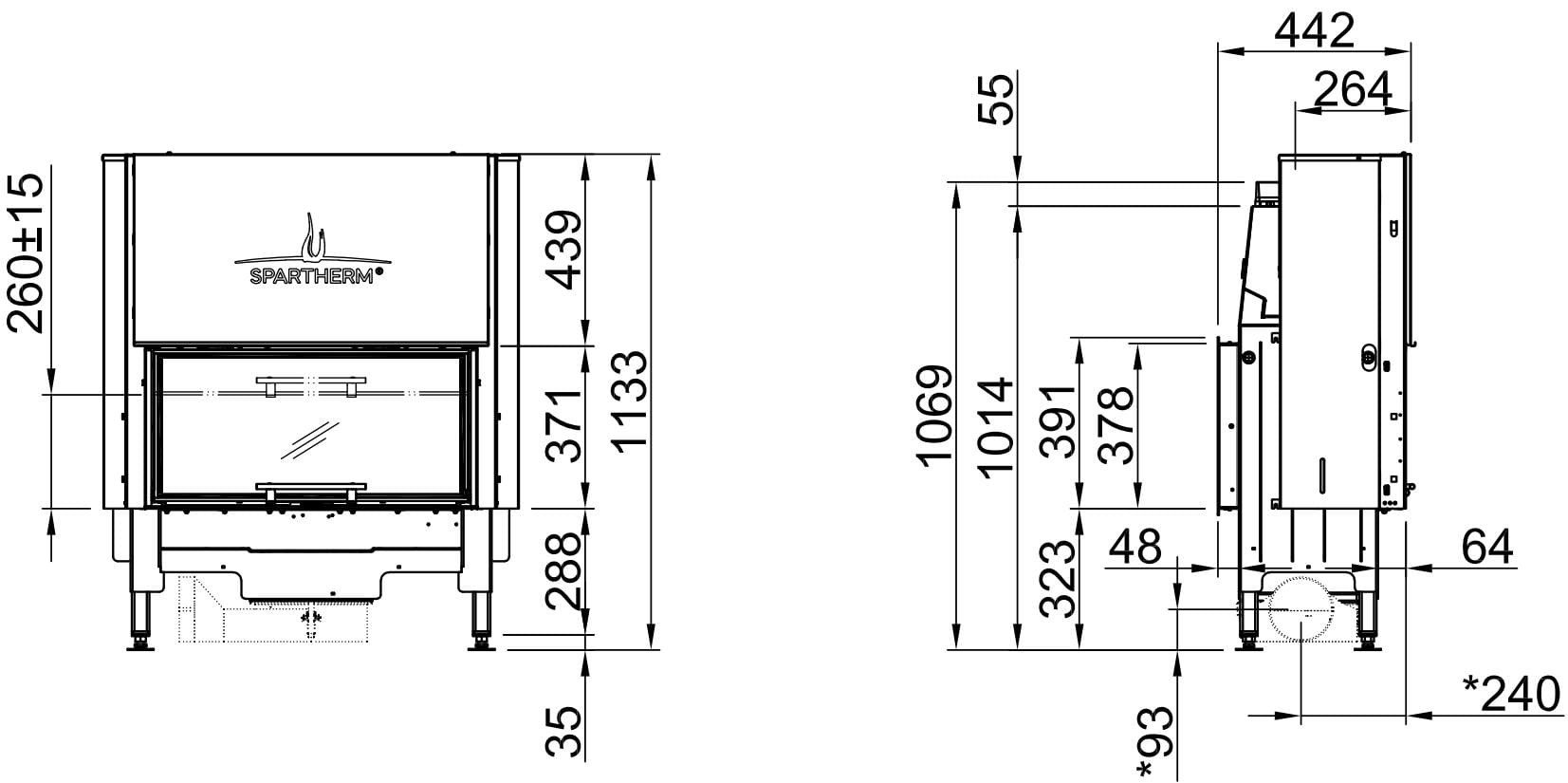 Каминная топка Spartherm Varia AS-FDh (Шпартерм Varia AS-FDh) — это высокоэффективная, современная модель с корпусом из стали. Максимальная мощность равна 9.1 кВт, чего хватает для обогрева помещения в 225 м³. КПД — 80%. У топки два прямых жаропрочных стекла, образующих сквозной обзор. Стекла по периметру украшены шелкографией (отделка Linear 4S). Фронтальная дверца с подъёмным механизмом. Ширина фронтальной дверцы — 730 мм, высота — 371 мм.