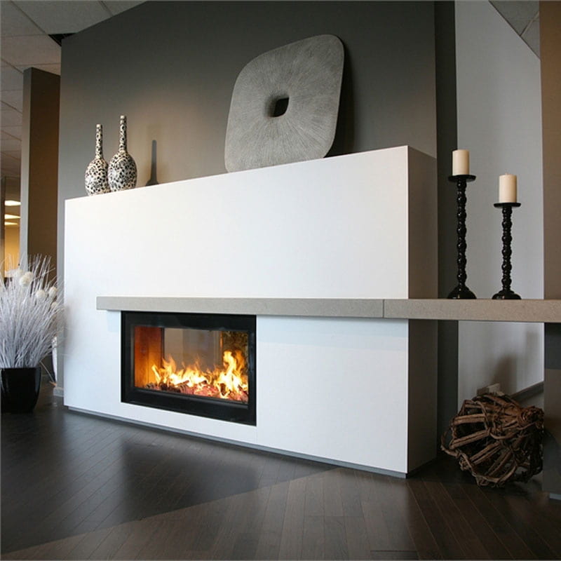 - Arte — модели с вытянутым по высоте стеклом. Вертикальный формат позволит в полной мере насладиться красотой горения. Максимальная мощность топок в диапазоне от 8.3 до 16.9 кВт. Возможны следующие варианты стекла: привычное фронтальное, двухстороннее или же трёхстороннее. Фронтальное стекло трёхсторонних топок может быть широким (такие модели лучше располагать у стены) или узким, но с длинными боковыми стёклами, что отлично подойдёт для завершения межкомнатной перегородки. Дверца всегда оснащена подъёмным механизмом.