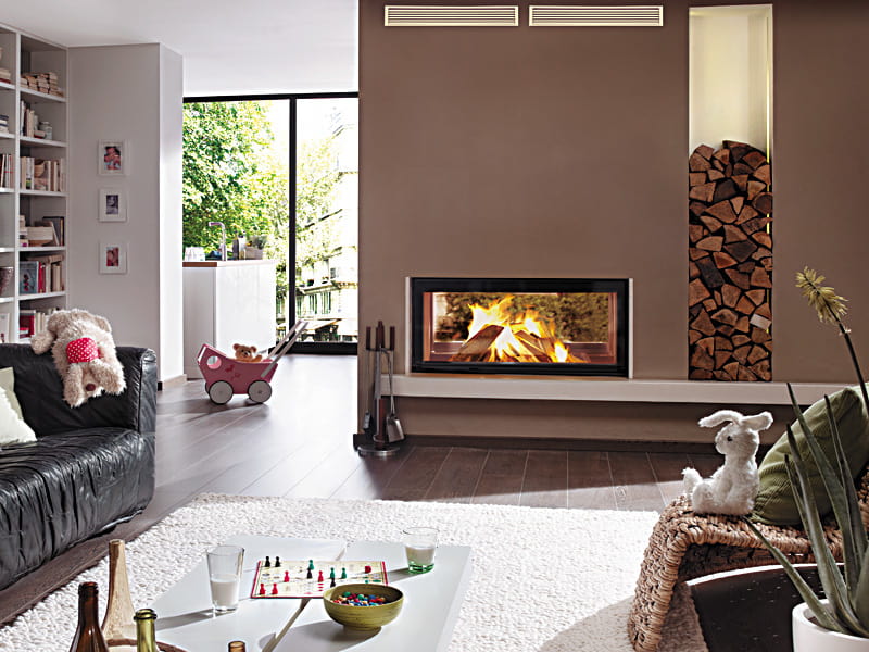 - Varia — максимальное разнообразие форм и размеров: фронтальные модели с подъёмным механизмом или левым/правым открыванием двери; двухсторонние (пристенно-угловые) варианты с обоими способами открывания; трёхсторонние топки с подъёмным механизмом или же модели со сквозным обзором, для встраивания между двумя комнатами. Ширина стекла — до 1200 мм. Макс. мощность в диапазоне 9.1—19.5 кВт.
