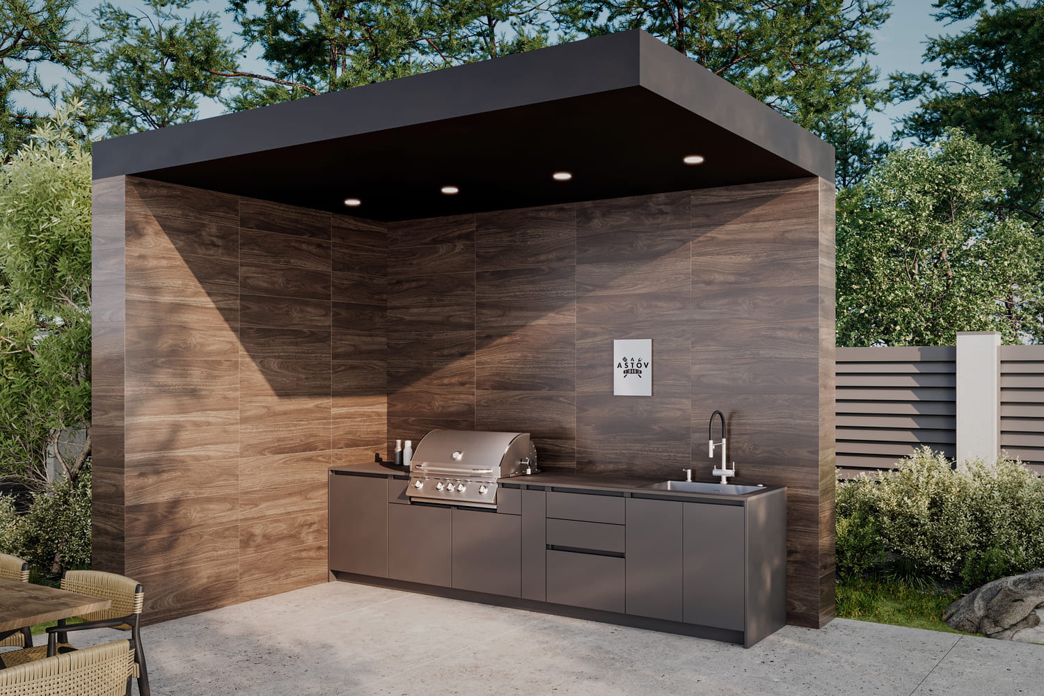 Компания Астов, обладая 20-летним опытом в производстве каминных топок и печей, в 2021 году открыла цех изготовления уличных кухонь. Учитывая многолетний опыт, а также отзывы и пожелания клиентов специалисты компании создают качественные модули с современным дизайном. Производство кухонь Астов не конвейерное — каждый модуль собирается вручную и проходит свой контроль качества в техническом отделе.