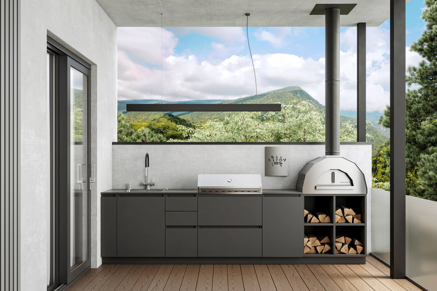 Кухня Астов № BBQ 4 (Кухня Astov BBQ № 4) — полноценная комплектация для тех, кто любит готовку на дровах и угле. Угольный гриль позволит быстро приготовить мясо или овощи, а в печи можно запечь хлеб, приготовить пиццу, пирог или сварить суп. Ширина комплекта — 3300 мм.