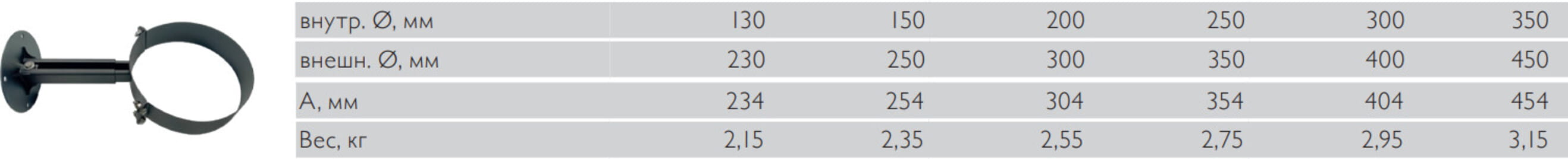 Хомут используется для крепления и жесткой фиксации части дымохода к несущей стене. Конструкция детали раздвижная, с ее помощью можно изменить расстояние от стены до канала дымохода на 200-350 мм.