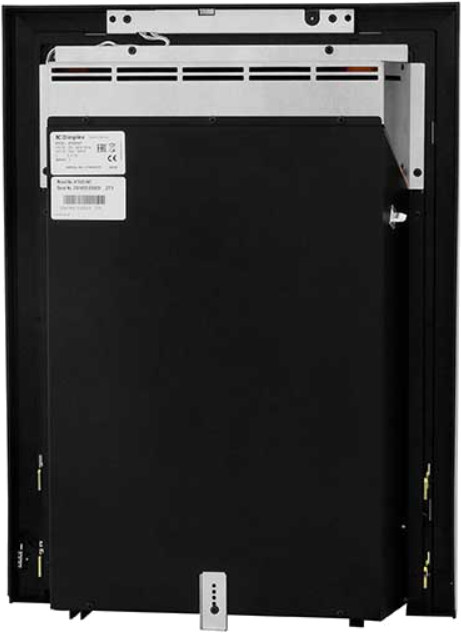 Очаг предусматривает как ручное управление, расположенное в верхней части под откидной заслонкой, так и управление при помощи пульта, входящего в комплект.