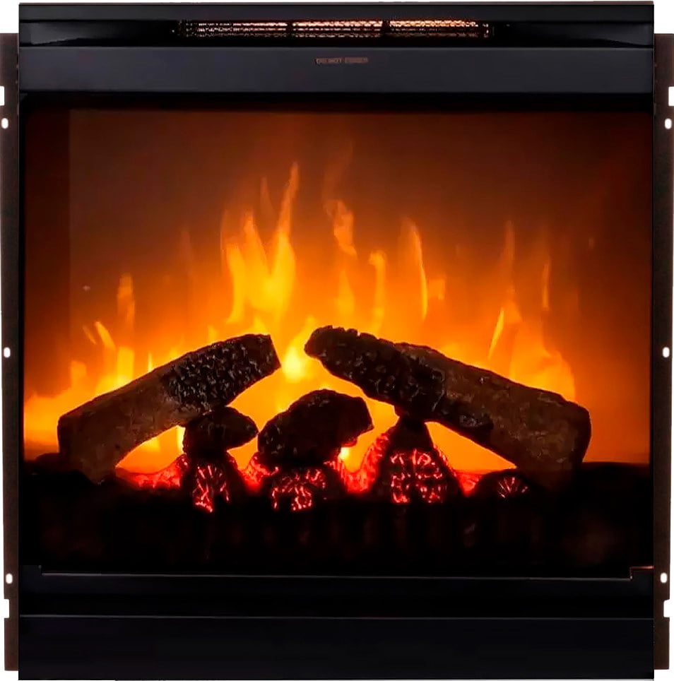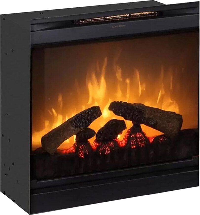 Нагреватель, оборудованный тепловентилятором, также можно использовать в качестве дополнительного источника тепла. Мощность обогрева составляет 1-2 кВт. В случае перегрева камин автоматически выключается. Корпус изделия окрашен в черный цвет. Внутри очага используются муляж поленьев.