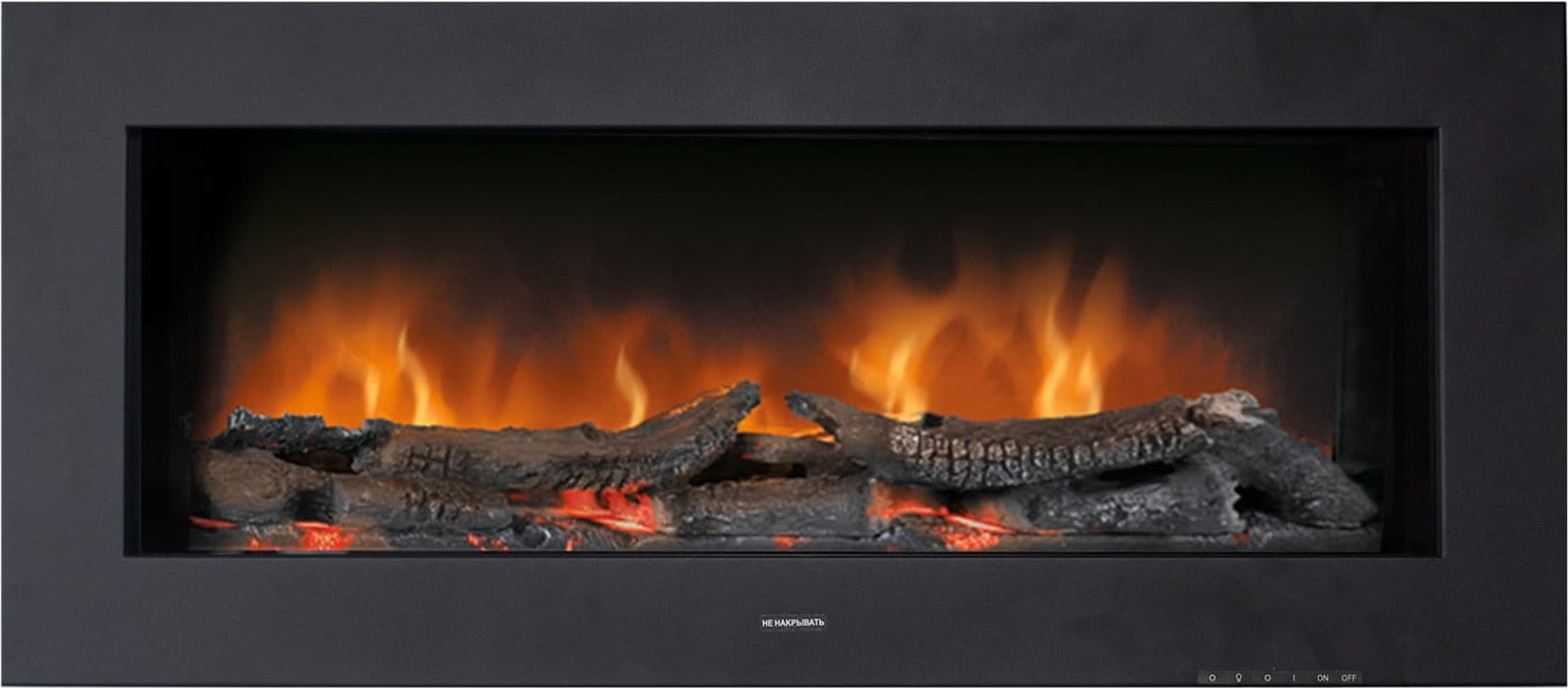 Корпус изделия выполнен в стиле Hi-Tech и окрашен в черный цвет. Внутри очага используются дополнительный верхний свет и муляж поленьев с мерцающим или статическим световым эффектом.