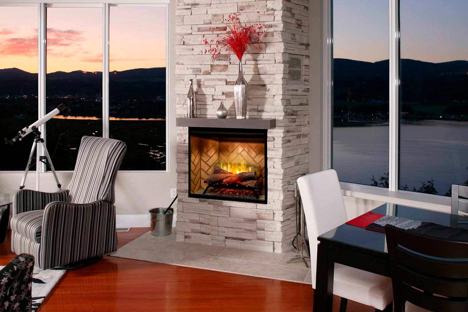 Устройства серии Revillusion – это камины премиум-класса, обладающие достаточно четким обзором задней стенки топки сквозь пламя, улучшенным цветом эффектов, а также еще более натуралистичными декоративными наполнителями. Они не нуждаются в топливе и не выделяют дыма или копоти, легки в установке и безопасны в эксплуатации.