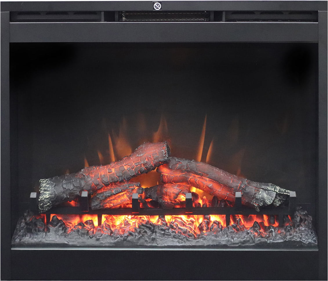 Корпус изделия окрашен в черный цвет. Внутри очага используются дополнительный верхний свет и муляж поленьев с мерцающим или статическим световым эффектом.
