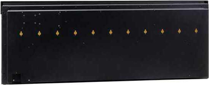 Глянцевое обрамление из пластика черного цвета выполнено в стиле Hi-Tech. Внутри очага используются декоративные кристаллы с серебристым покрытием, мерцающие в свете пламени.