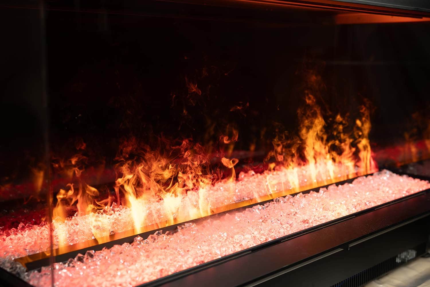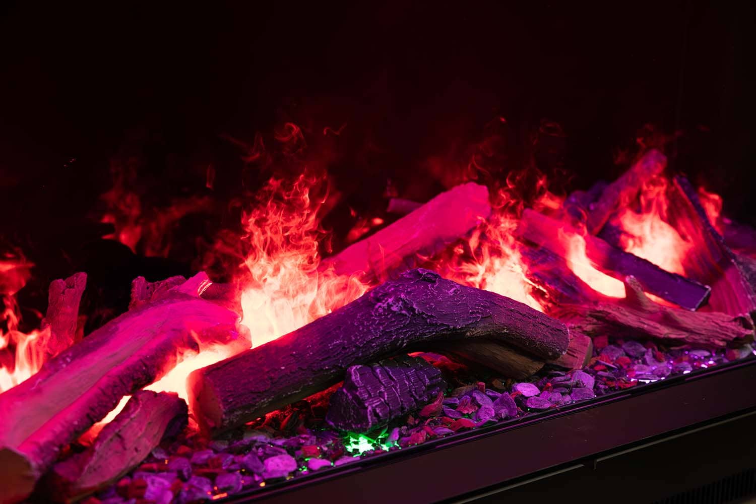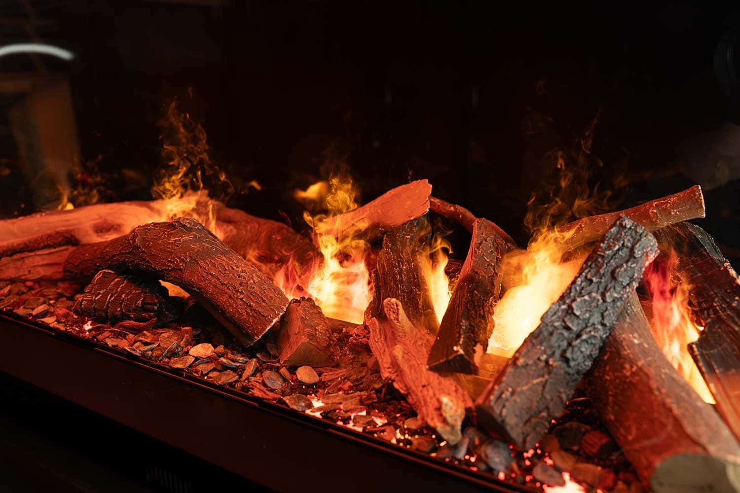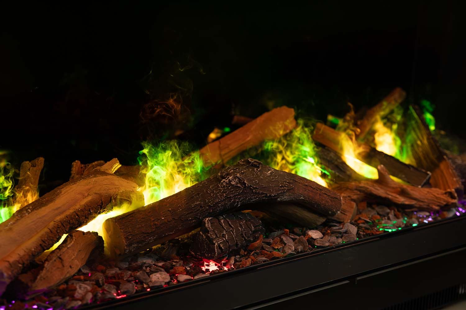 Внутри модели в качестве декоративных элементов используются керамические поленья, акриловые кристаллы или белая галька. Имитация горения сопровождается звуковыми эффектами. Подсветка имеет уже готовые цветовые темы с возможностью создания своей собственной посредством настройки цвета отдельных диодов.