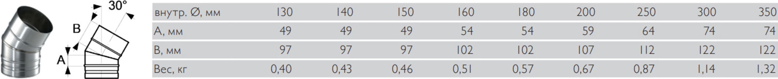 Отвод 30 градусов Schiedel Prima Plus 140 мм (Отвод 30 градусов Шидель Прима Плюс 140 мм) — элемент, предназначенный для одноконтурной дымоходной системы Prima Plus с внутренним диаметром 140 мм. Материал изделия — неокрашенная полированная нержавеющая сталь.