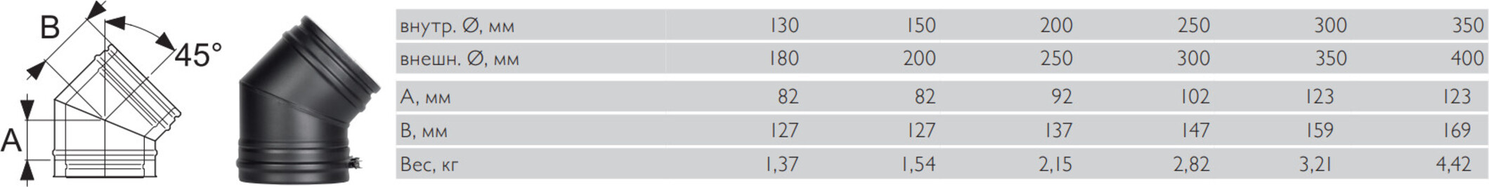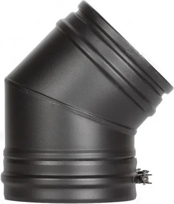 Используется для изменения направления дымохода с наклоном в 45°, что поможет обойти препятствия в перекрытиях при монтаже вертикальной конструкции. При установке отвода 45° расстояние по осям дымохода не должно превышать 40 см. В сочетании с тройником аналогичного угла, отвод позволяет соединить горизонтальный участок с вертикальным дымоходом.