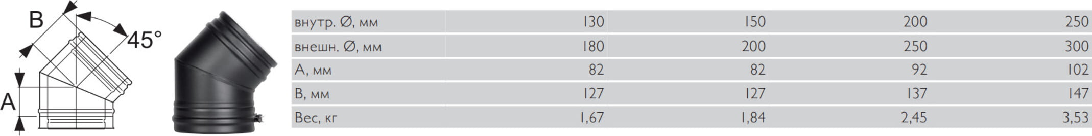 Используется для изменении направления дымохода с наклоном в 45°, что поможет обойти препятствия в перекрытиях при монтаже вертикальной конструкции.