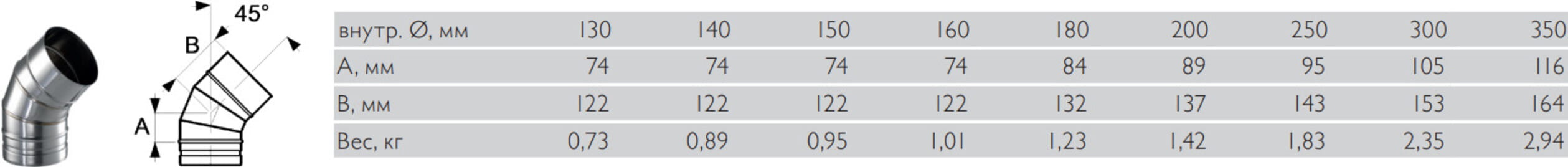 Отвод 45 градусов Schiedel Prima 1 350 мм (Отвод 45 градусов Шидель Прима 1 350 мм) — элемент, предназначенный для одноконтурной дымоходной системы Prima 1 с внутренним диаметром 350 мм. Материал изготовления — неокрашенная полированная нержавеющая сталь.