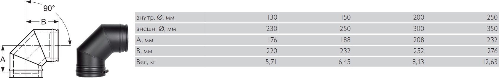 Используется для изменении направления дымохода с наклоном в 90°, что поможет обойти препятствия в перекрытиях при монтаже вертикальной конструкции.
