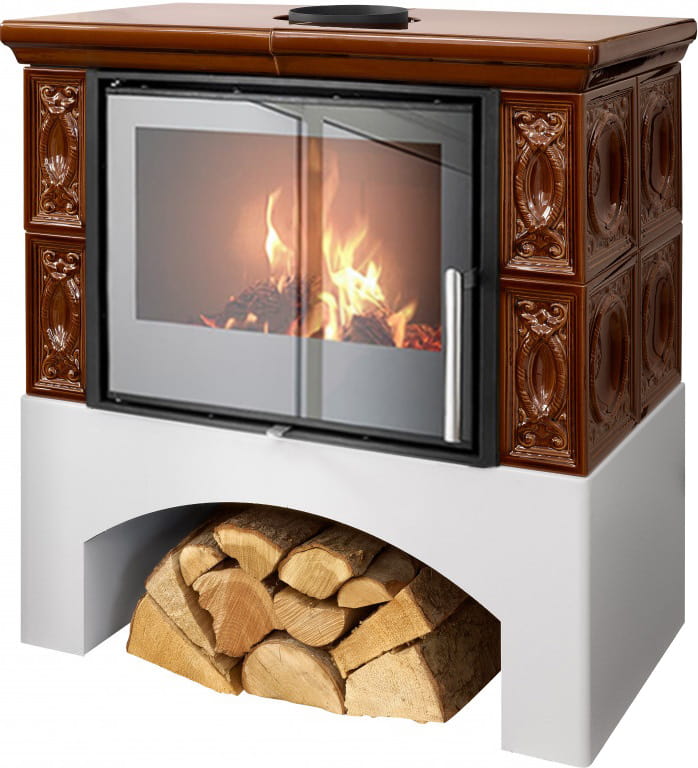 Печь-камин ABX Panonie оснащена топкой Exclusive. Облицовка из изразцов коричневого цвета. Мощность печи — 7 кВт, достаточно для помещения в 140 м3. Очаг прямоугольной формы. Большое прямое стекло открывает отличный вид на огонь. Футеровка топки из вермикулита. Очаг с притоком воздуха извне. Цоколь печи стальной, с дровником. Дымоход, диаметром 150 мм, подключается сверху. Гарантия — 5 лет.