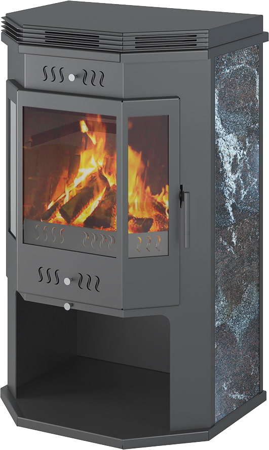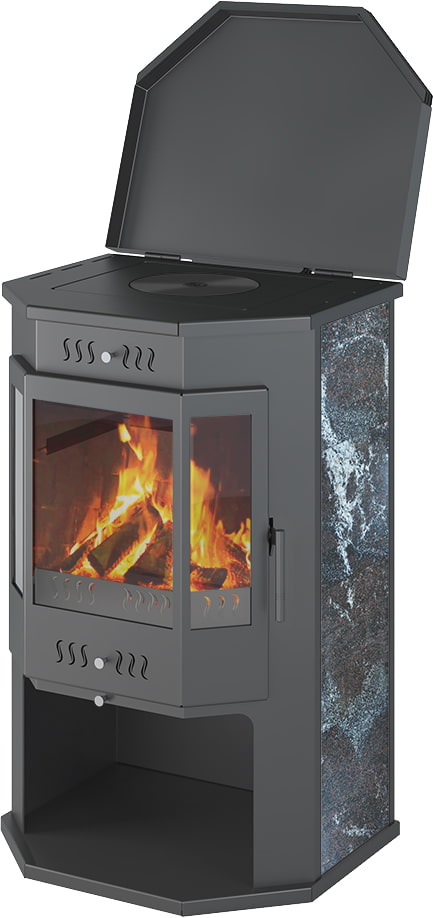 Печь-камин Астон 12 кВт (200 м3) Призматик с плитой (Амфиболит)