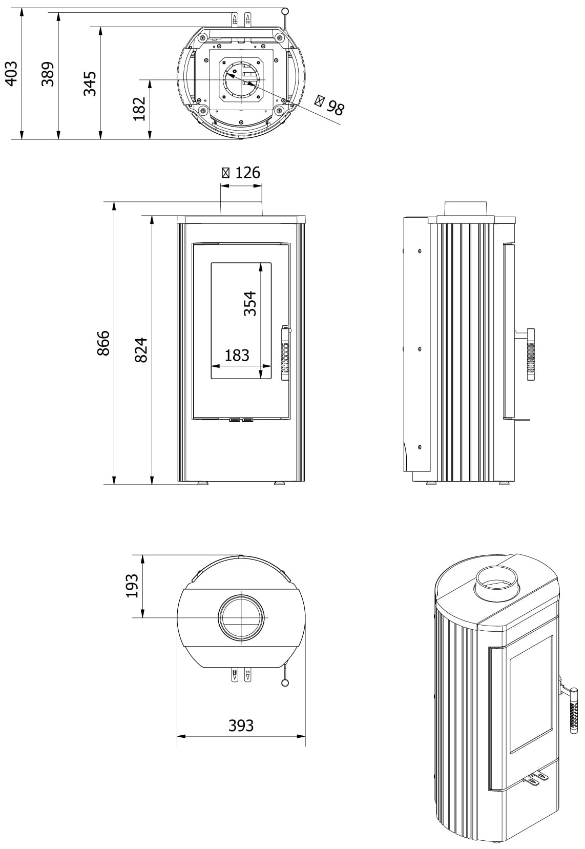 | Выход дымохода | Сверху |