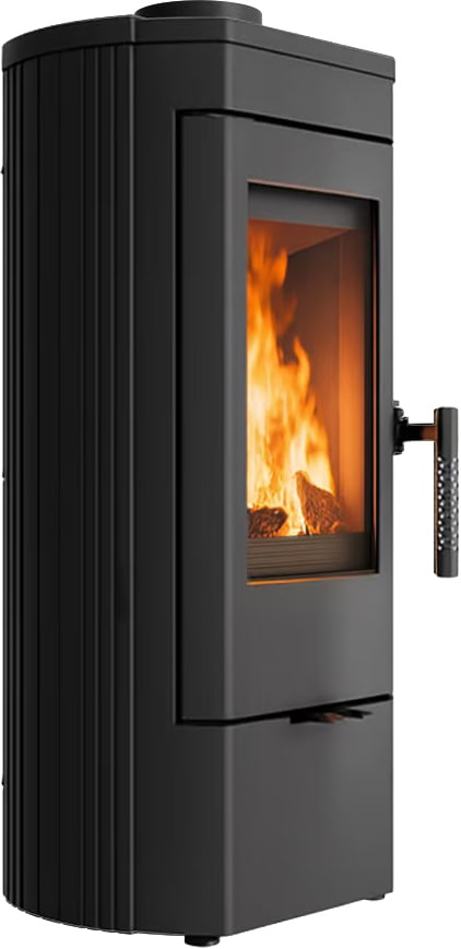 Дверца оснащена прямым стеклом диагональю ~400 мм, через которое открывается отличный обзор на огонь. Модель снабжена всеми современными технологиями горения: вторичный дожиг газов, система "Чистое стекло" и возможность подключения притока воздуха извне (патрубок 100 мм). Контроль горения обеспечивается двумя независимыми регуляторами.