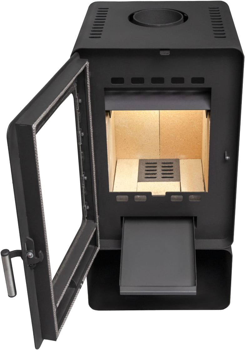 Возможность обзора за процессом горения обеспечивает жаростойкое стекло. По форме оно бывает: