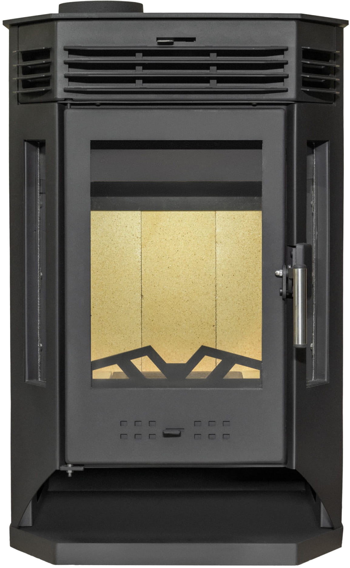 Возможность обзора за процессом горения обеспечивает жаростойкое стекло. По форме оно бывает: