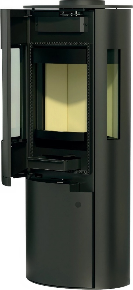 Отопительные устройства, изготовленные из высококачественной стали, окрашенной в черный цвет. Диапазон тепловой мощности серии составляет 5.5-5.9 кВт. Внутренняя часть камина футерована теплонакопительным материалом. Приток воздуха в камеру сгорания извне может осуществляться через вставку для забора наружного воздуха диаметром 120 мм. Для регулирования первичного и вторичного воздуха на передней панели имеется единый рычаг.