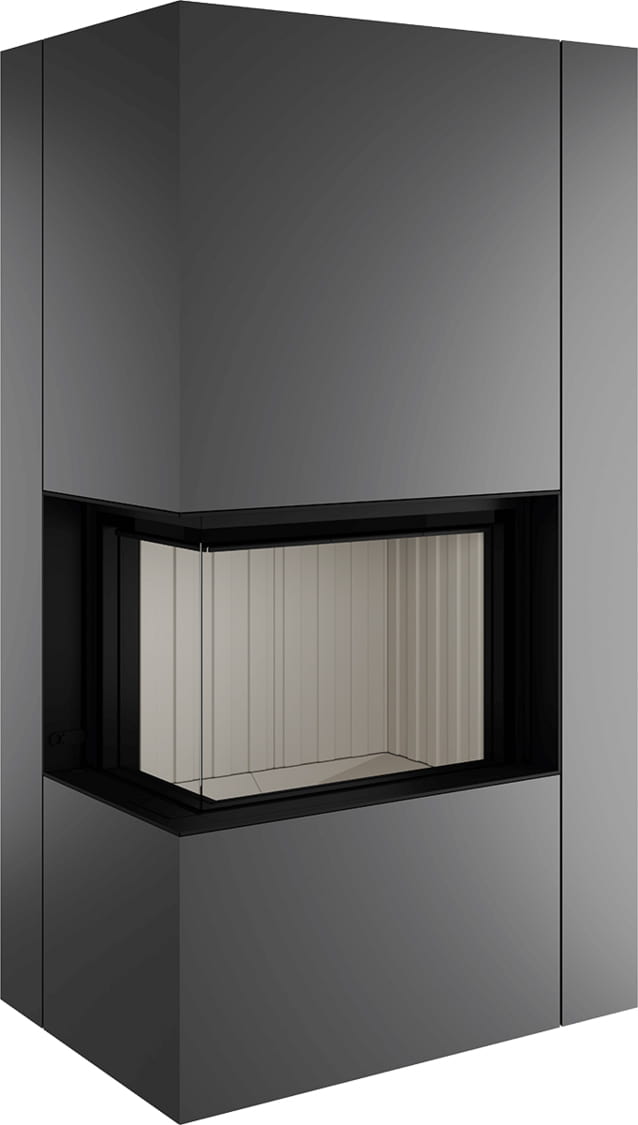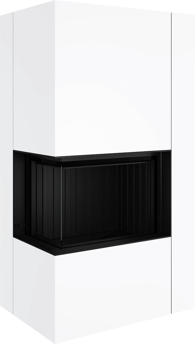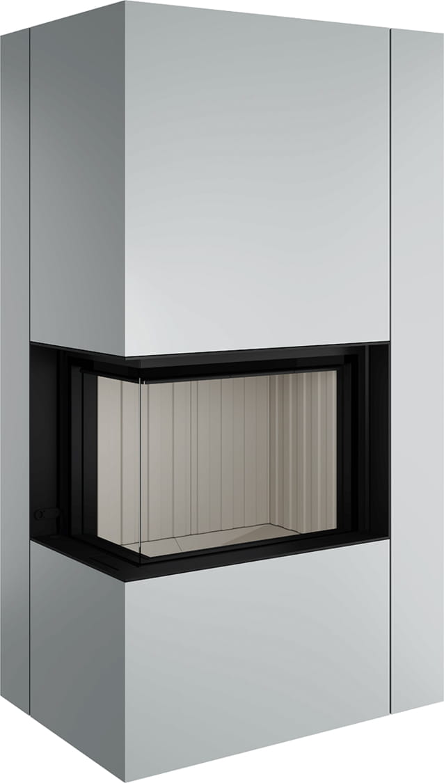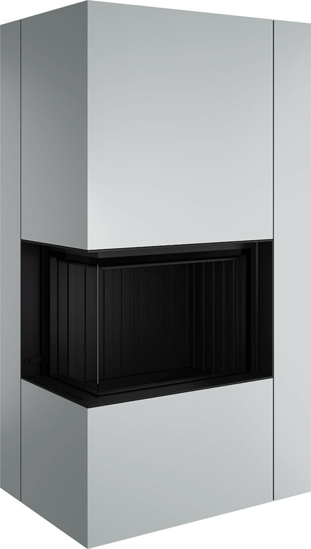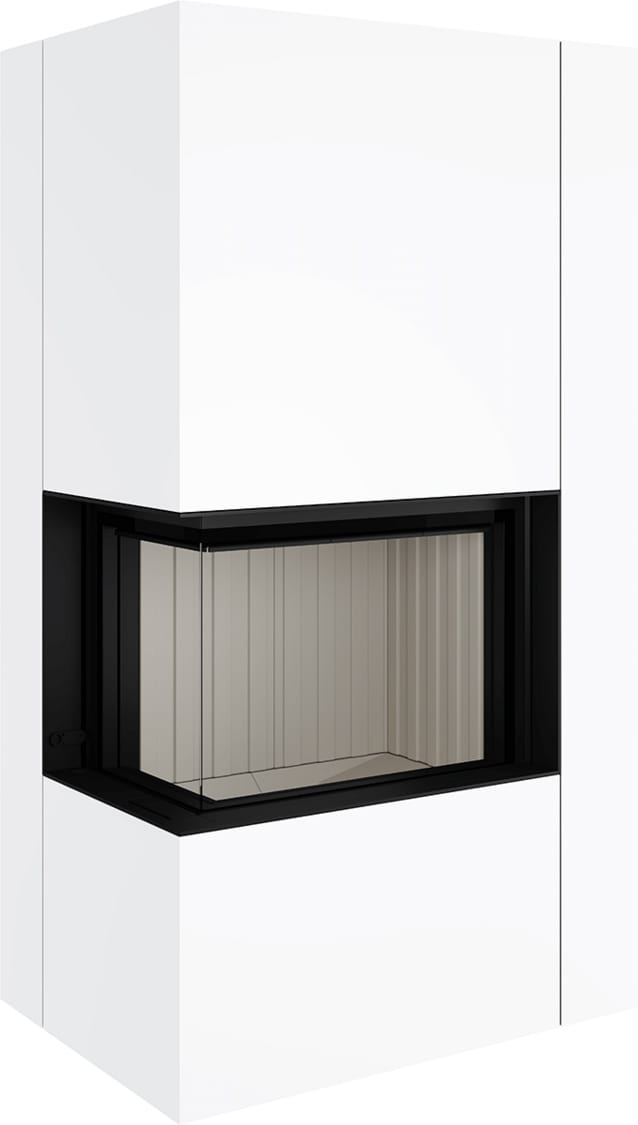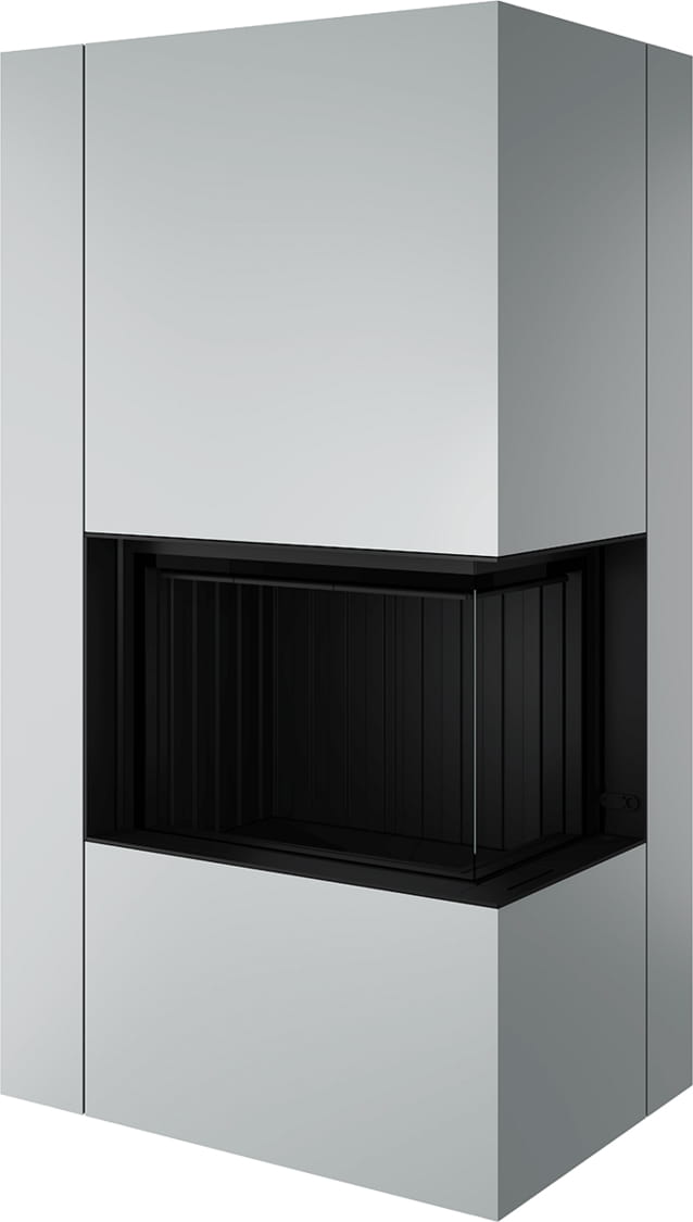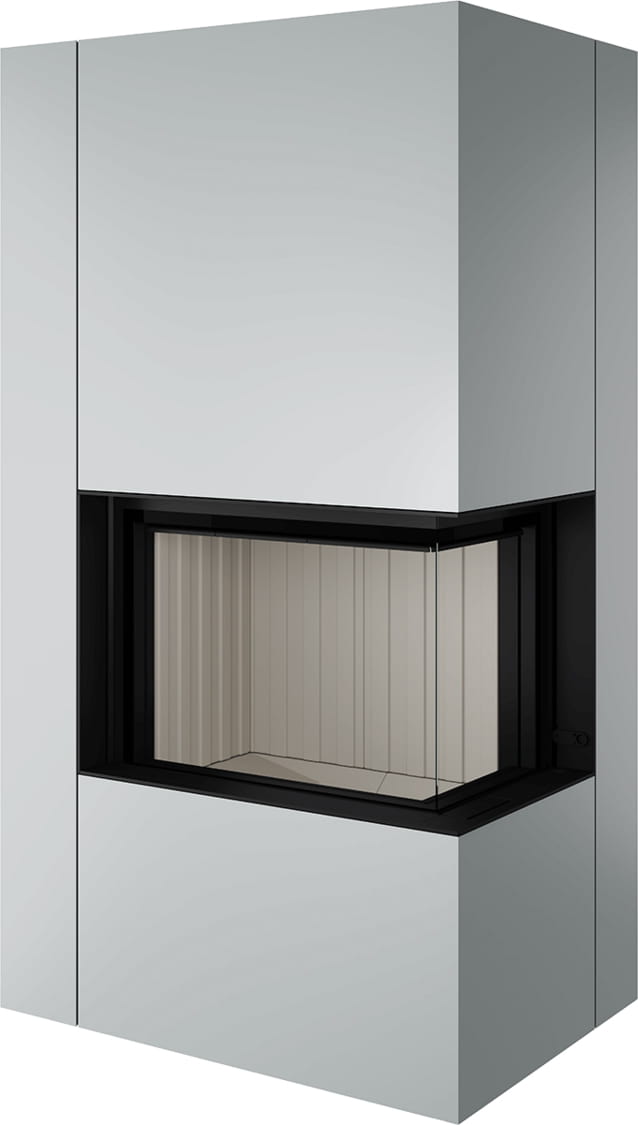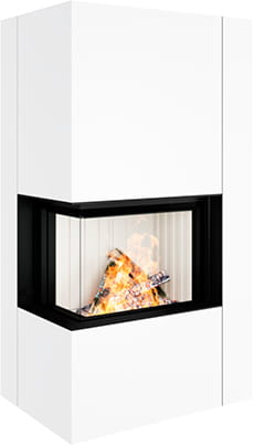 Очаг прямоугольной формы, печь можно разместить как у стены, так и в углу комнаты. Два стекла открывают отличный вид на огонь. Второе стекло расположено слева (2L) или справа (2R). Футеровка топки выполнена из шамота белого (опционально черного) цвета. Очаг с возможностью притока воздуха извне. Высота модели — 1775 мм. Дымоход диаметром 200 мм подключается сверху или сзади.