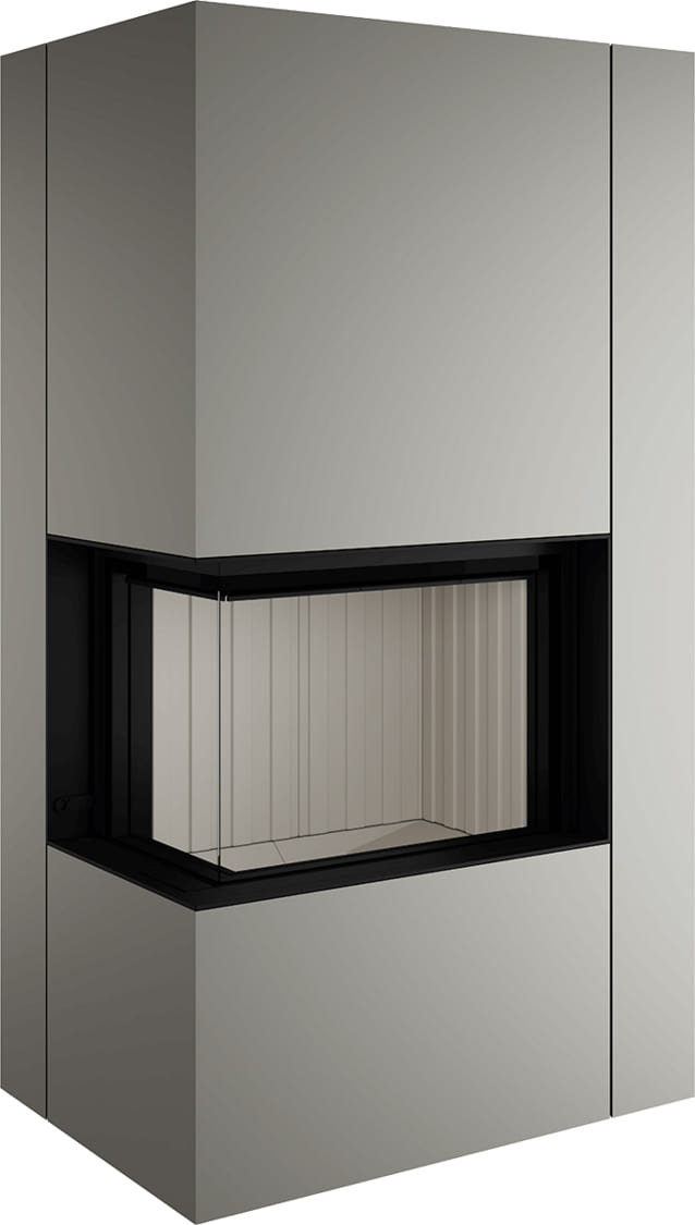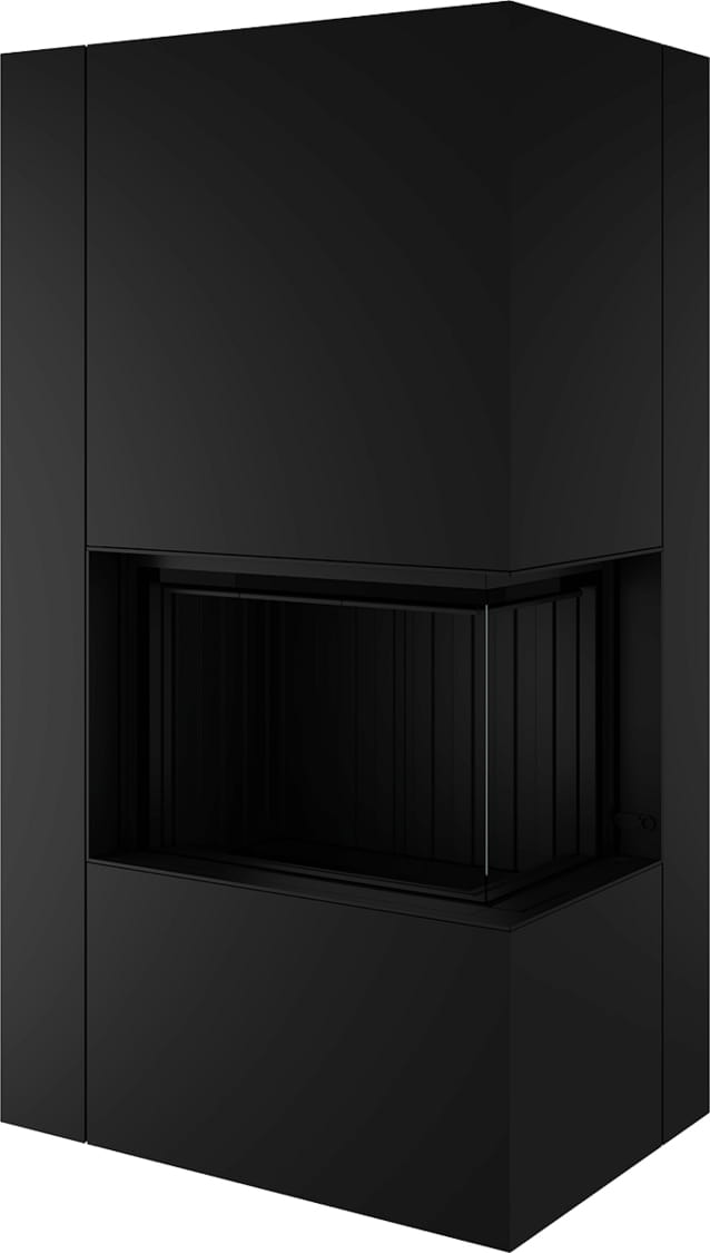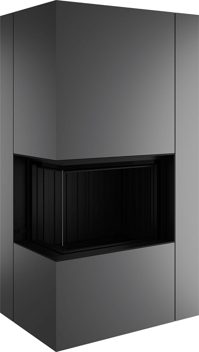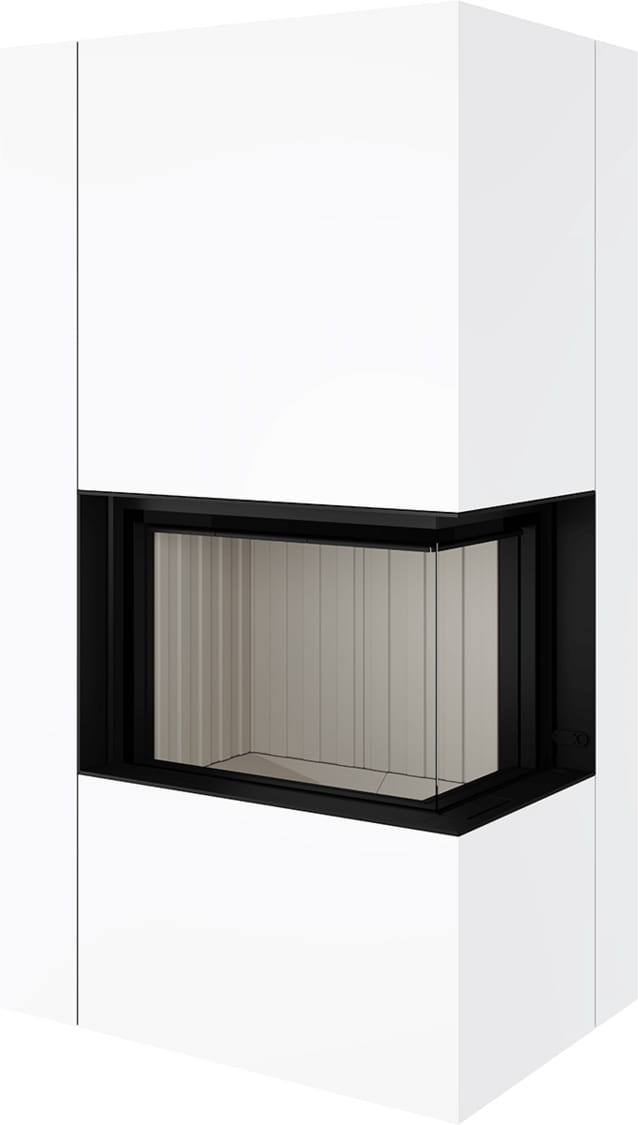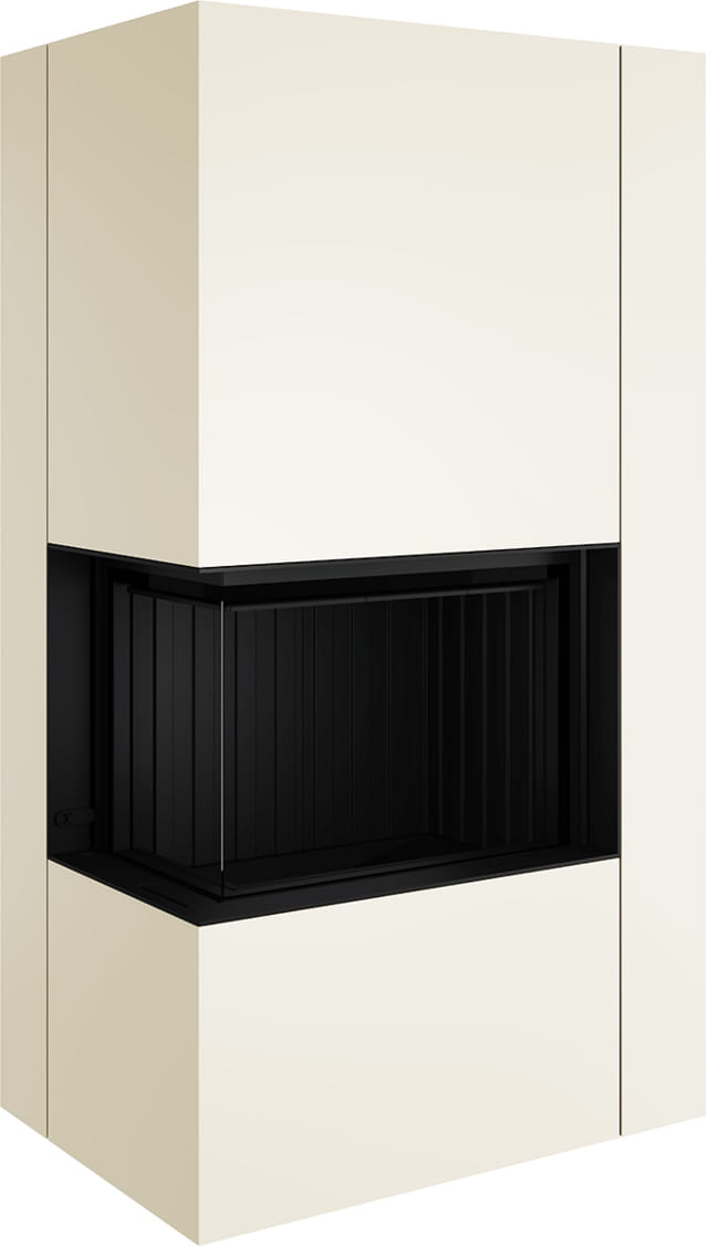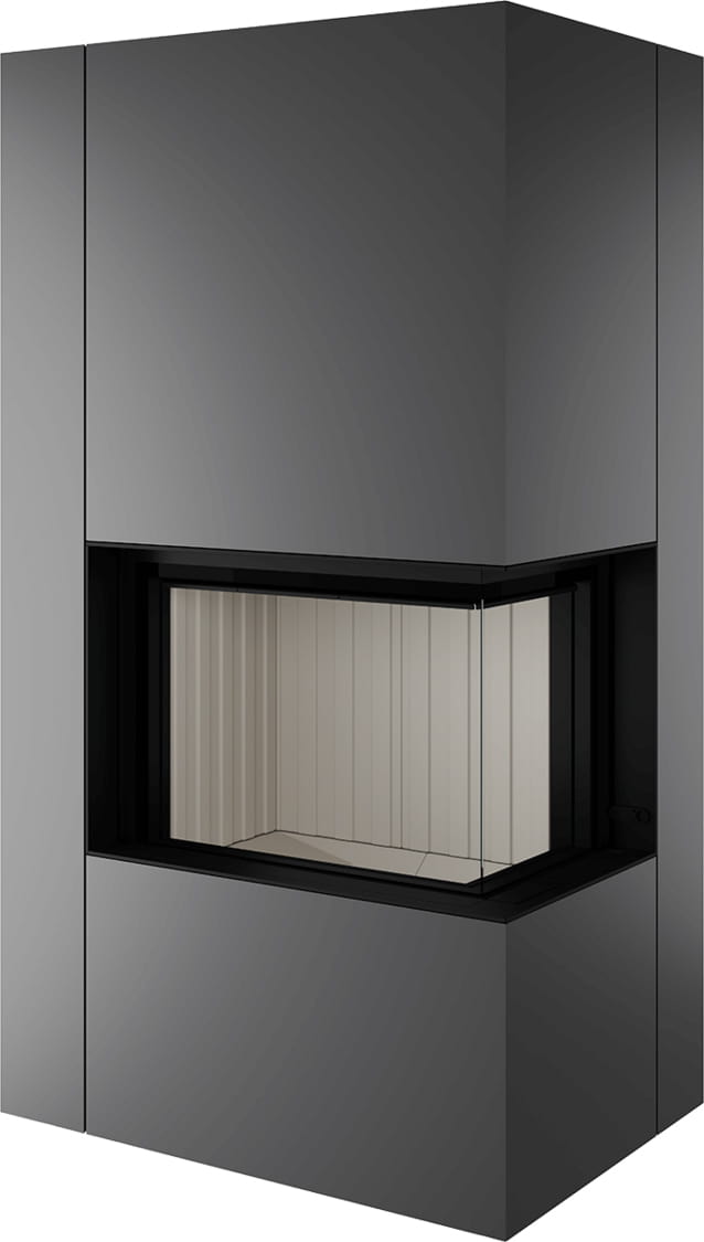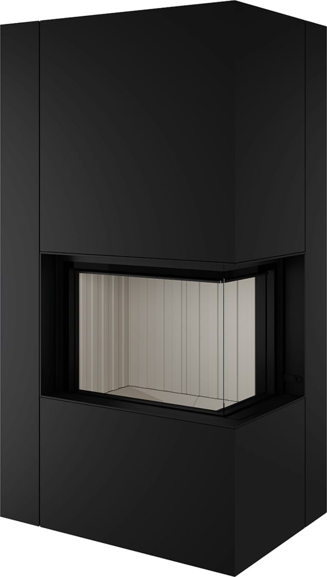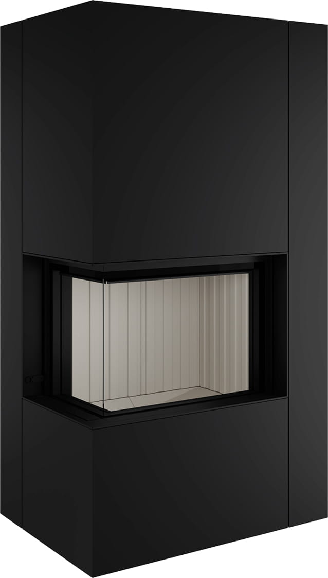 Очаг прямоугольной формы, печь можно разместить как у стены, так и в углу комнаты. Два стекла открывают отличный вид на огонь. Второе стекло расположено слева (2L) или справа (2R). Футеровка топки выполнена из шамота белого (опционально черного) цвета. Очаг с возможностью притока воздуха извне. Высота модели — 1775 мм. Дымоход диаметром 200 мм подключается сверху или сзади.