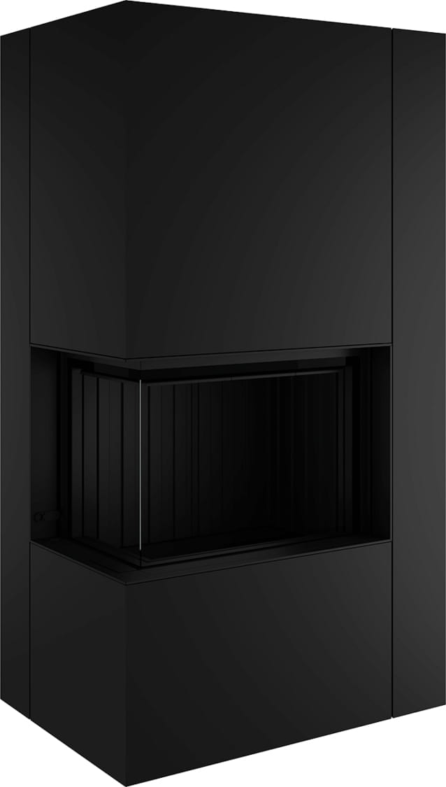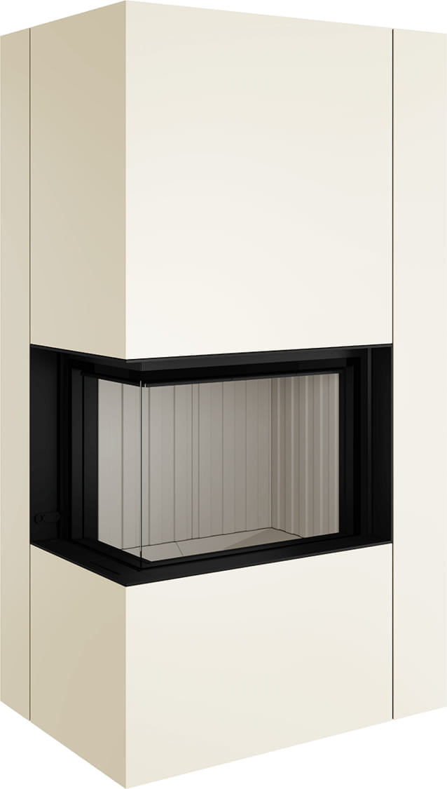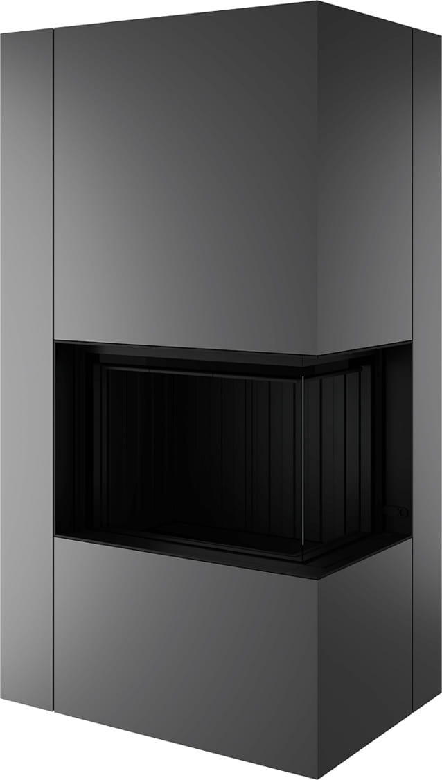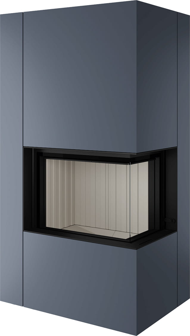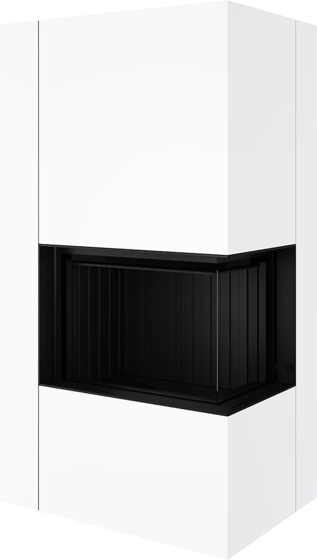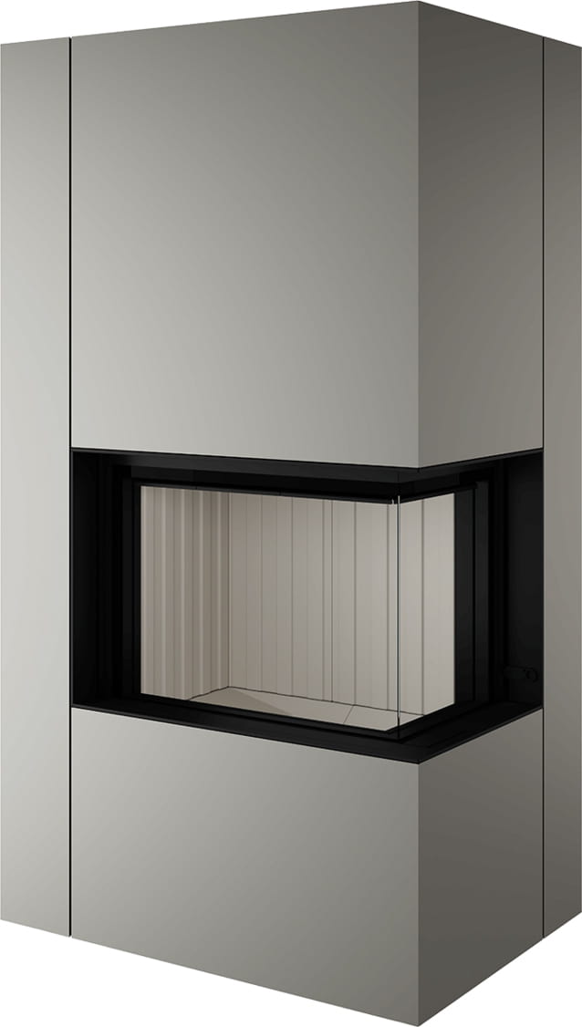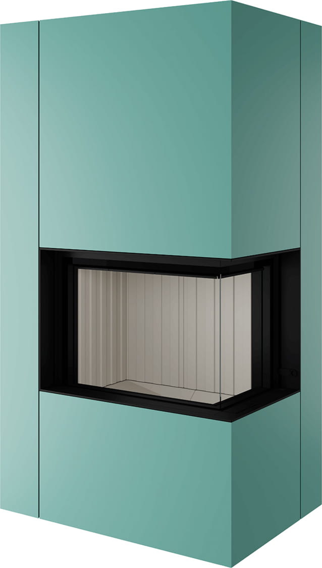 Очаг прямоугольной формы, печь можно разместить как у стены, так и в углу комнаты. Два стекла открывают отличный вид на огонь. Второе стекло расположено слева (2L) или справа (2R). Футеровка топки выполнена из шамота белого (опционально черного) цвета. Очаг с возможностью притока воздуха извне. Высота модели — 1775 мм. Дымоход диаметром 200 мм подключается сверху или сзади.