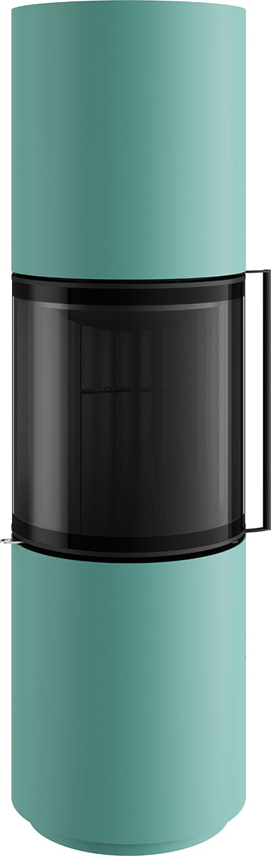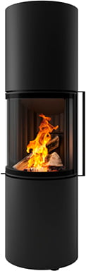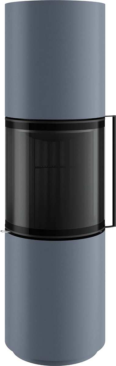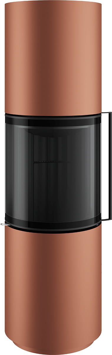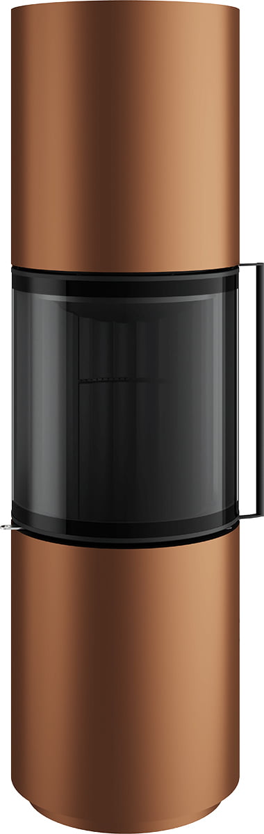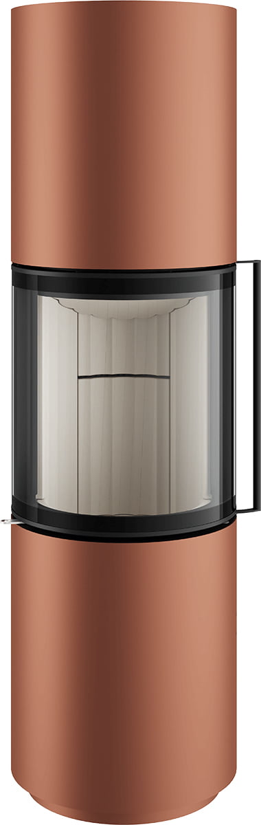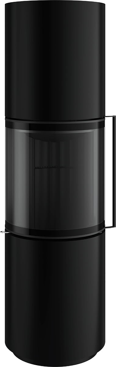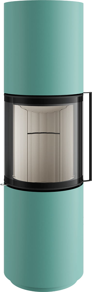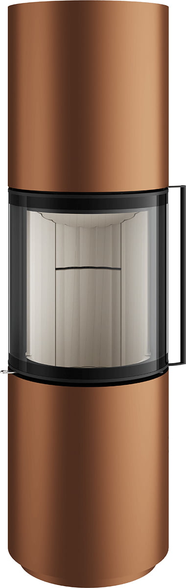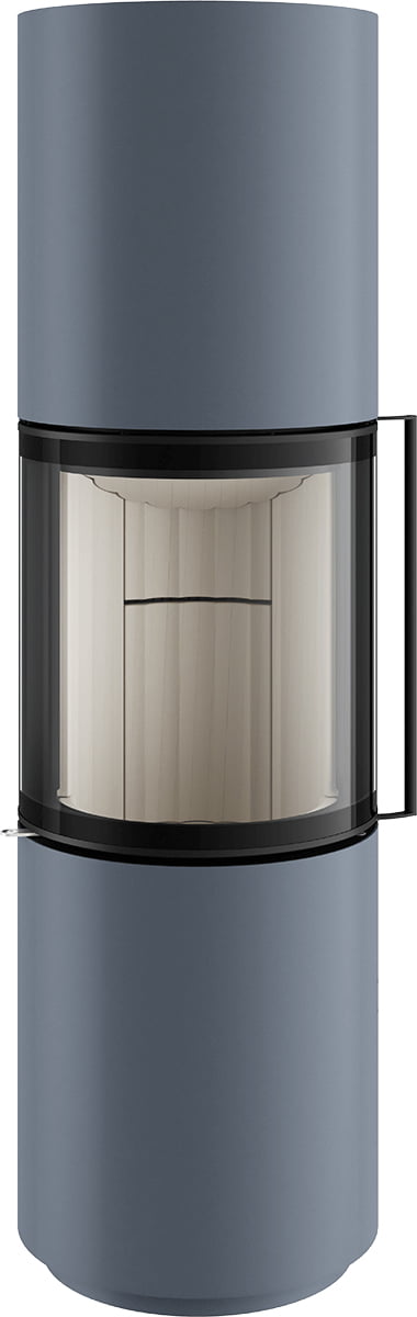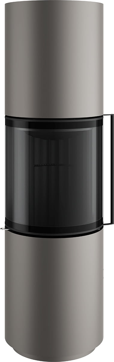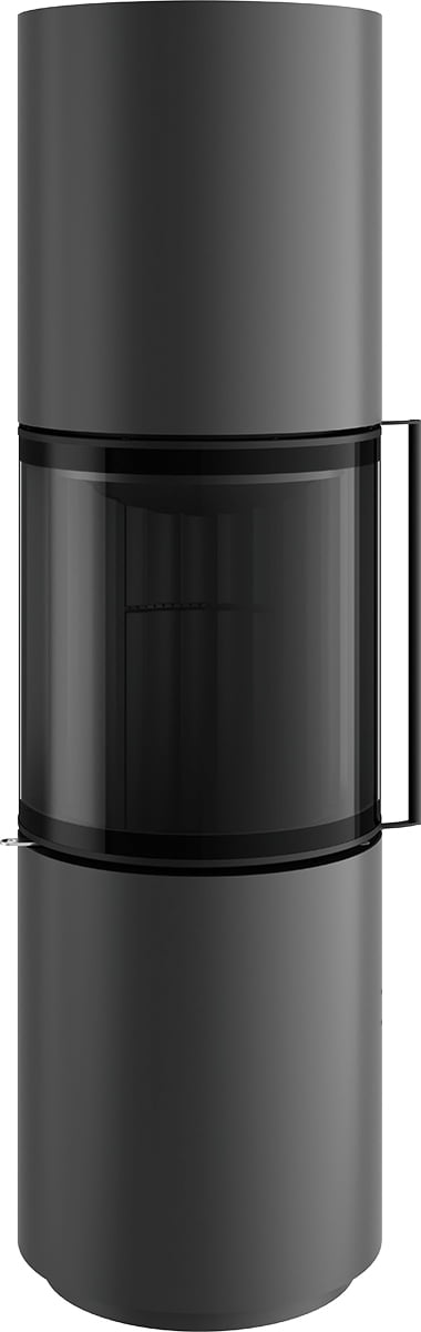 Очаг цилиндрической формы, печь можно разместить как у стены, так и в центре комнаты. Большое панорамное стекло открывает отличный вид на огонь. Футеровка топки выполнена из шамота белого (опционально черного) цвета. Очаг с возможностью притока воздуха извне. Высота модели — 1646 мм. Дымоход диаметром 150 мм подключается сверху или сзади.