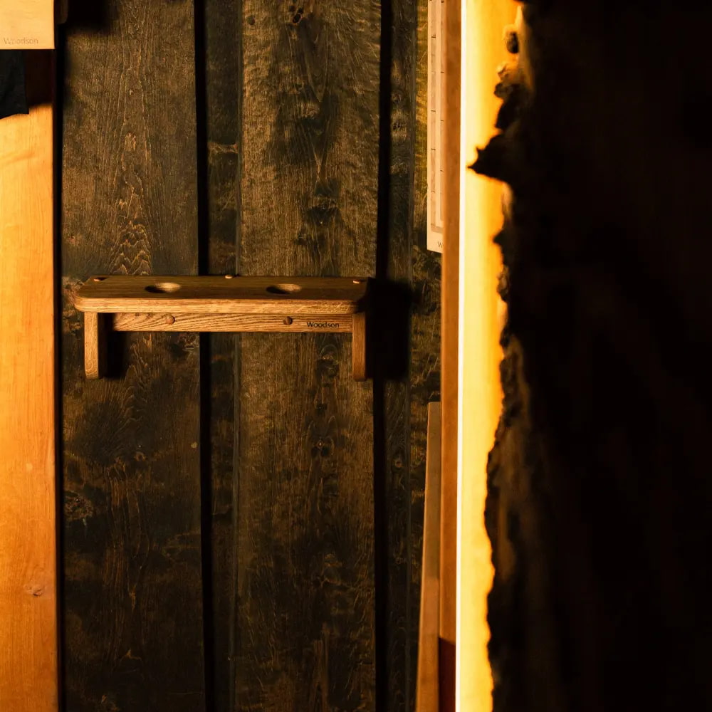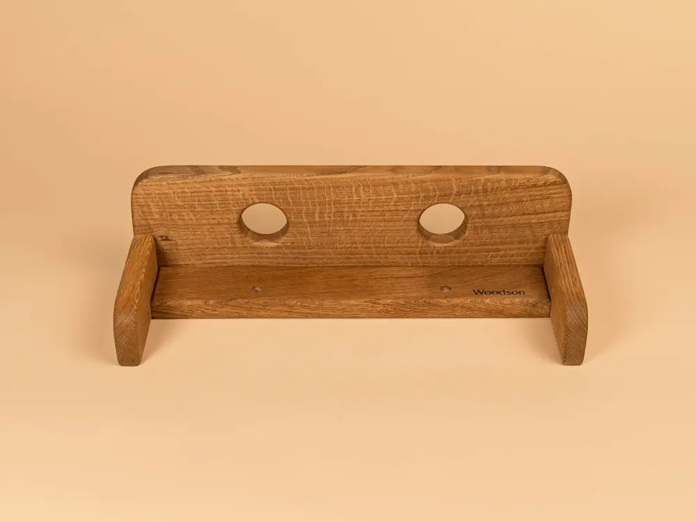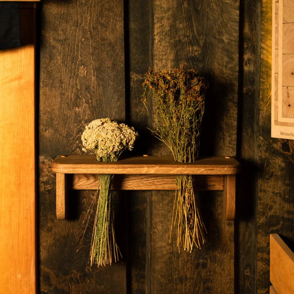 Полка для трав и веников Woodson Мини, Дуб (Полка для трав и веников Вудсон Мини, Дуб) — изделие с двумя отверстиями для комфортного хранения целебных трав или ароматических сборов, а также просушки классических банных веников. Элемент выполнен из массива дуба и покрыт натуральным маслом. Ширина — 430 мм.