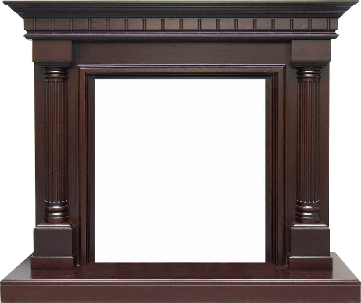 Портал Dimplex Dallas (Портал Димплекс Даллас) — декоративное пристенное обрамление, изготовленное из МДФ и шпона. Зона топки декорирована арками с прямыми линиями, фронтальные панели по бокам от очага украшают античные каннелированные колонны на постаментах. Изделие стоит на высоком выступающем пьедестале, сверху имеет достаточно широкую каминную полку с многоступенчатым карнизом.