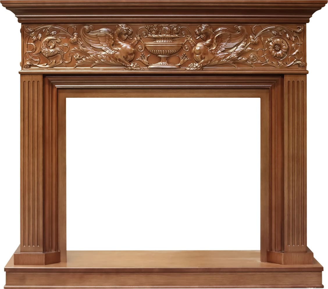 - При изготовлении порталов применяются плиты МДФ и высококачественный шпон в различных цветовых решениях: слоновая кость, белый дуб, темный орех, венге и так далее. Также встречается эмалевое покрытие, обеспечивающее прочность и водостойкость материала, или лаковое — сохраняющее текстуру дерева. При создании более дорогих моделей используют природный камень, фактура и цвет которых сочетаются с любым очагом.