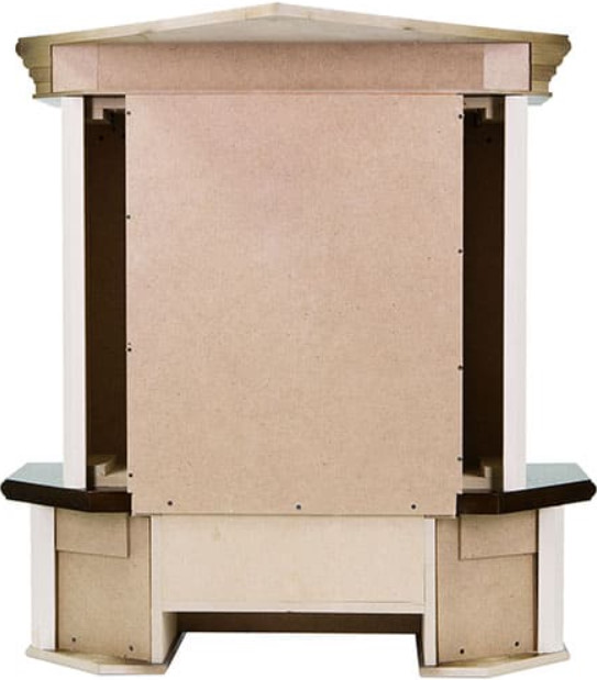 Портал Dimplex Pierre Luxe угловой - Темный дуб / Шампань (Высота 975 мм) (Портал Димплекс Пьер Люкс угловой - Темный дуб / Шампань (Высота 975 мм)) — декоративное обрамление с угловым размещением, изготовленное из МДФ, шпона и искусственного камня светлого тона.