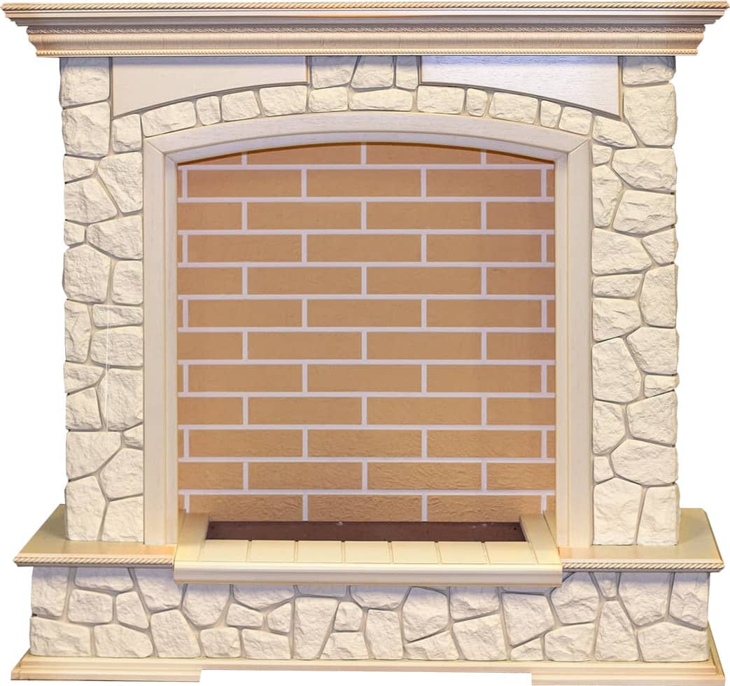 Портал Dimplex Preston - Слоновая кость с патиной / Кирпич (Портал Димплекс Престон - Слоновая кость с патиной / Кирпич) — декоративное пристенное обрамление, изготовленное из МДФ, шпона и искусственного камня светлого тона. Корпус портала выполнен в лаконичном стиле, строгие симметричные линии разбавляют слегка изогнутые декоративные элементы.