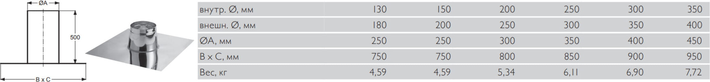 Деталь с наклоном 0° обеспечивает герметичное примыкание кровли и конструкции дымоходного канала, препятствуя попаданию под них влаги. Уплотнительная манжета не входит в комплект.