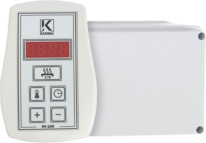 Пульт управления Karina Slim CS32 до 32 кВт (Кирина Слим CS32) — устройство с цифровой панелью, предназначенное для управления электрическими печами мощностью до 32 кВт. С помощью пульта можно контролировать температурный режим и поддерживать его стабильность в парильном помещении. Корпус устройства изготовлен из пластика в белом цвете.