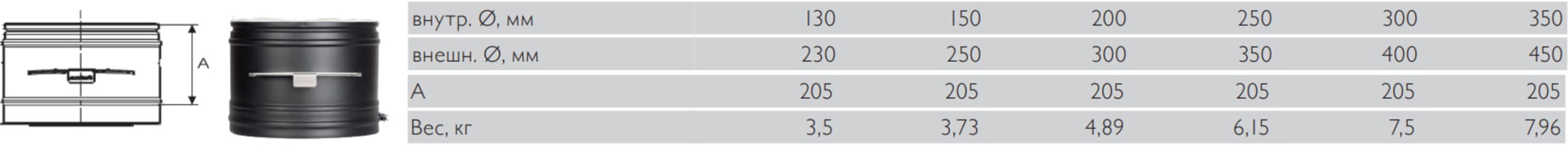 Шибер Schiedel Permeter 50 д. 250 мм (Чер.)