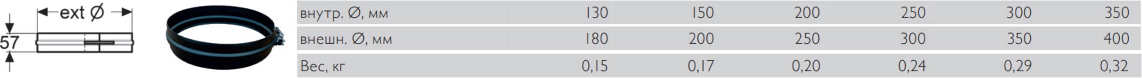 Обжимной хомут используется для соединения двух частей дымохода по внешнему контуру оболочки. Конструкция имеет стяжку на болтах и на специальном замке. Фиксация деталей между собой при помощи хомутов также повышает прочность системы дымоудаления. Стандартный хомут входит в комплект элементов с изоляцией до 350 диаметра.