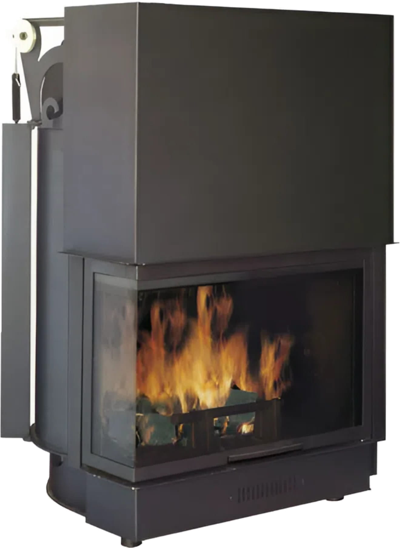 - Дверца с подъёмным механизмом, оснащенная керамическим стеклом, способным выдержать температуру до 800° C.