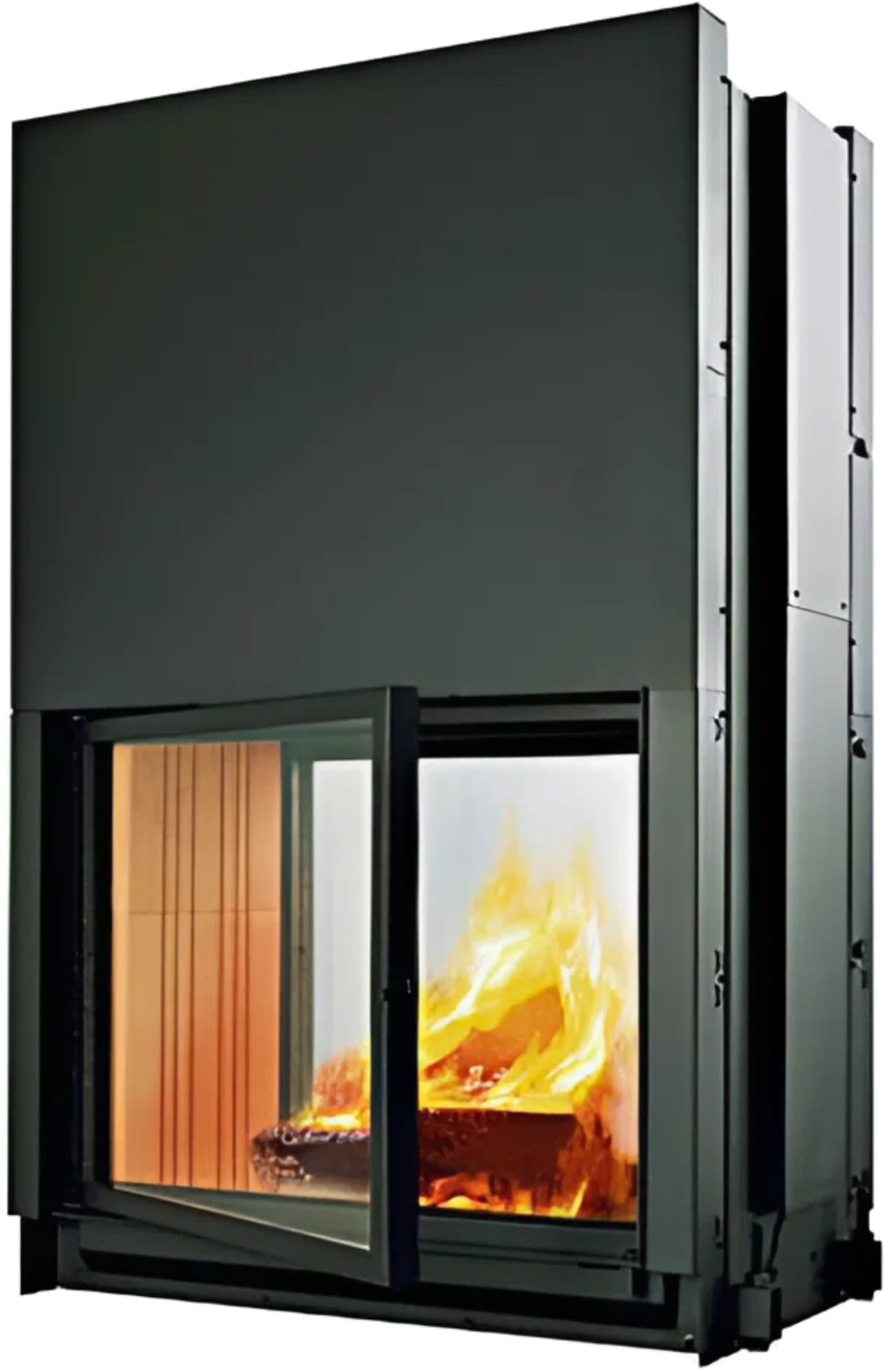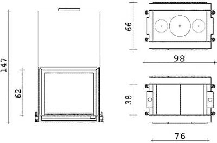 Каминная топка Edilkamin Double (ЭдилКамин Дабл) — это высокоэффективная модель с толстым стальным корпусом. Мощность устройства составляет 12 кВт, чего хватает для обогрева помещения в 315 м³. КПД — 68%. У топки два прямых жаропрочных стекла, образующих сквозной обзор. Фронтальная дверца с подъёмным механизмом. Ширина дверцы — 760 мм, высота — 620 мм.