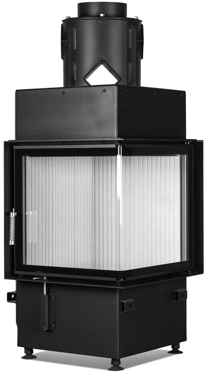 - Стальной теплообменник — дополнительный элемент в лаконичном дизайне, увеличивающий количество тепла, отдаваемого топкой благодаря продуманной циркуляции. Возможен вариант с выходом под 45 или 90°.