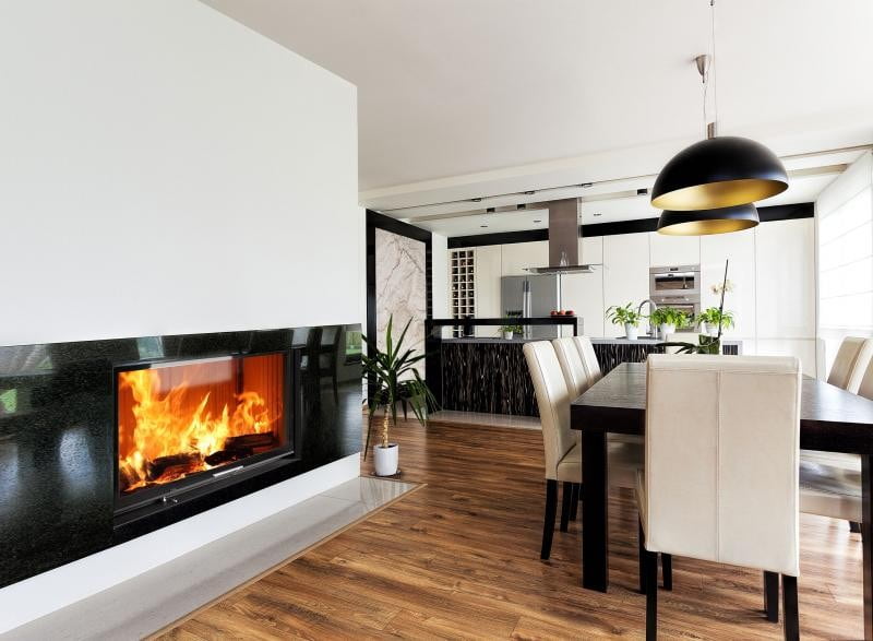 Кроме того, уменьшается передача тепла от стекла в помещение, что делает нахождение возле камина более комфортным. Компания Hoxter в 2012 году впервые на рынке представила двойное остекление топок с цельногнутым угловым стеклом.
