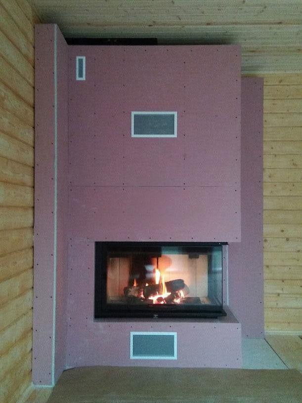 Футеровкой топочной камеры выступает огнеупорная керамика белого или чёрного цвета, на выбор покупателя. Чёрный цвет футеровки достигается благодаря двойному глазурированию, что обеспечивает более гладкую и яркую поверхность. На дно топки устанавливается колосниковая решётка. Для отвода продуктов сгорания необходим дымоход диаметром 180 или 200 мм.