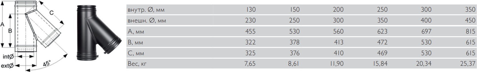 Тройник 45 град. Schiedel Permeter 50 д. 300 мм (Чер.) (Тройник 45 град. Шидель Перметр 50 д. 300 мм) — элемент, окрашенный в черный цвет, предназначен для дымоходной системы Permeter 50 с внутренним диаметром 300 мм.