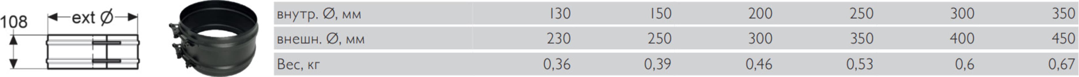 Хомут используется для соединения двух частей дымохода по внешнему контуру оболочки. Конструкция имеет стяжку на болтах и специальный замок. Фиксация деталей между собой при помощи усиленного хомута также придает дополнительную жесткость и прочность системе дымоудаления: если стандартного хомута хватает на участок в 1.5 м, то усиленного достаточно на 3 м.