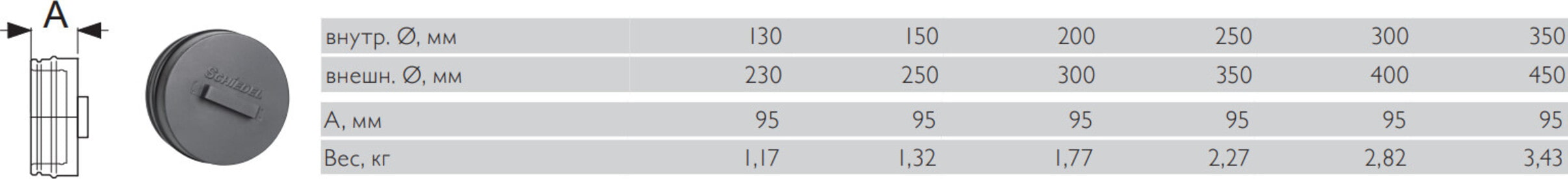 Заглушка тройника для твёрдого топлива Schiedel Permeter 50 д. 350 мм (Сер.) (Заглушка тройника для твёрдого топлива Шидель Перметр 50 д. 350 мм) — элемент, окрашенный в серый цвет, предназначен для дымоходной системы Permeter 50 с внутренним диаметром 350 мм.